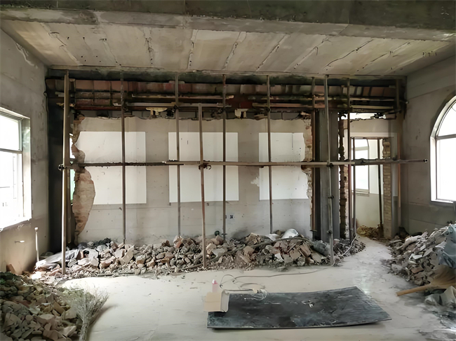 2. 搭建支撐結構:在拆除承重墻之前,需要在墻體兩側搭建臨時支撐結構,以確保在拆除過程中房屋的整體穩定性。支撐結構通常采用工字鋼或鋼管,并配以墊板,以分散荷載并減少振動。支撐結構的搭建應嚴格按照設計方案進行,確保其承載能力和穩定性。